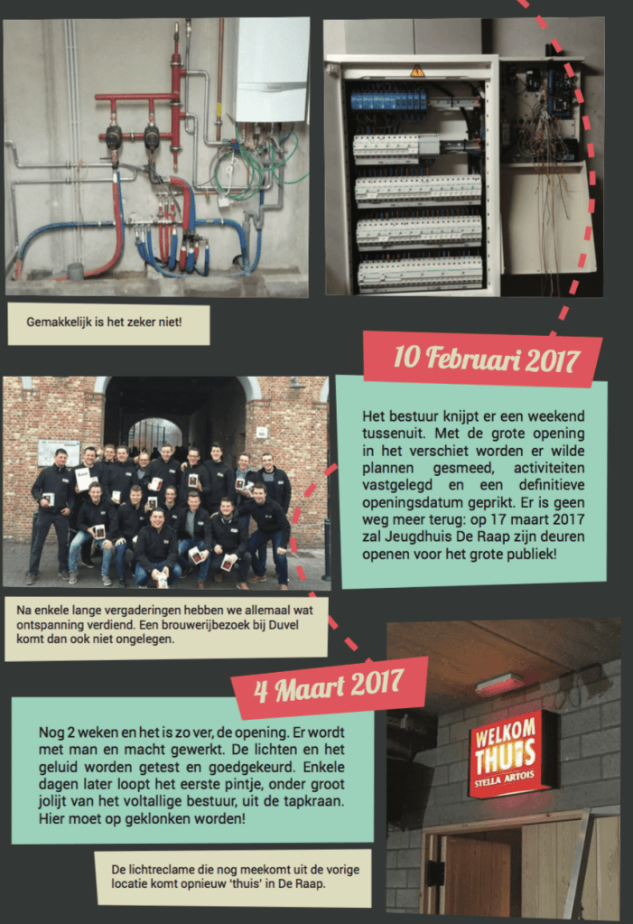 Een nieuw jeugdhuis, een nieuw gloednieuw gebouw, een nieuw begin. Na bijna 4 jaar zonder jeugdhuis was het dan ook niet onlogisch dat vele jeugdige Loenhoutenaren nog nooit in ‘De Raap’ waren geweest. Enkel oude verhalen kwamen wel eens naar boven van de oudere generatie of zelfs van ouders die vroeger hun jeugdige jaren op ‘t Neerven hebben doorgebracht. Maar dat het ‘nieuwe’ JH DE RAAP ook bij de nieuwe generatie onmiddellijk in de harten zou gesloten worden, werd al vanaf minuut 1 duidelijk…