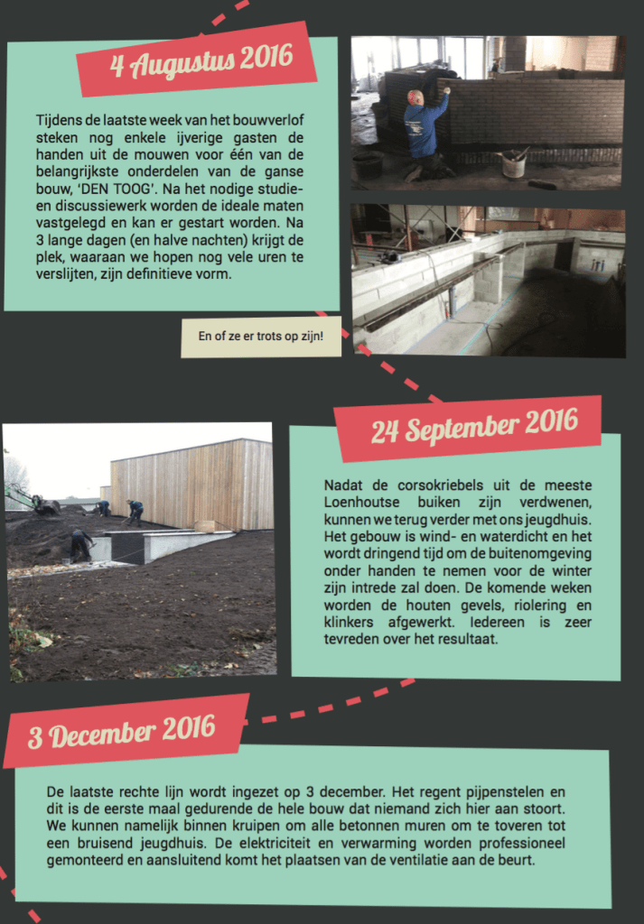Vanuit het huidige bestuur nogmaals een welgemeende woord van dank aan de vele vrijwilligers die dag en nacht er met bloed, zweet en tranen voor gezorgd hebben dat de Loenhoutse Jeugd elke weekend kan thuiskomen in het mooiste jeugdhuis van het land.