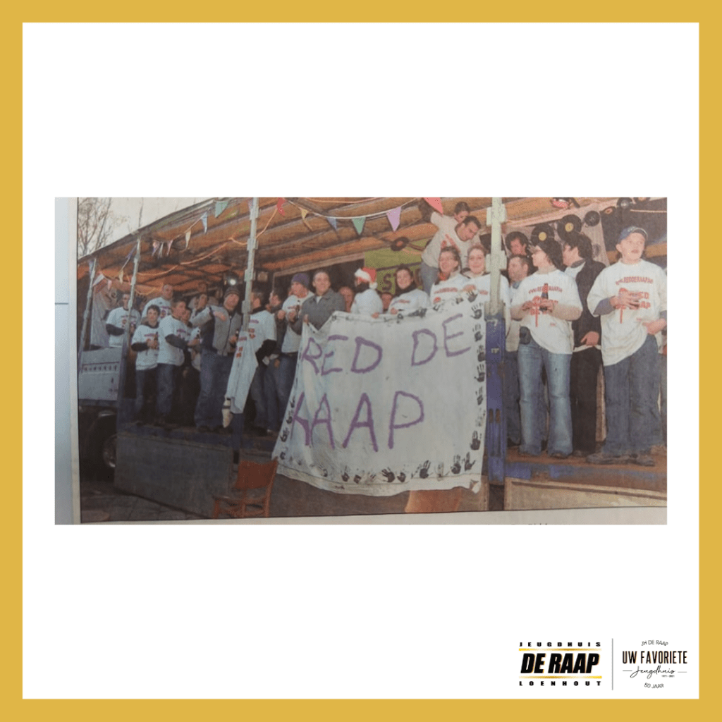 Maar het bleef natuurlijk maar een jeugdhuis in een oud boerderijtje met enkel glas, amper isolatie en wc’s die te wensen over lieten. Er werd beslist om de bouwval te renoveren tot een woning en daarom kon het jeugdhuis er in 2004 niet langer blijven. Een heuse Raap-parade werd georganiseerd waarbij we met een grote trailer rondreden in Loenhout en omstreken, dit om aandacht te vragen voor ons locatieloos jeugdhuis.