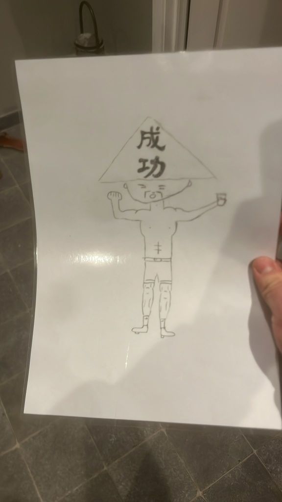 We zien een tekening van een man uit China met dorst als opschrift. Maar als je de plattegrond van de locatie rond het vat erbij neemt, merk je al snel op dat beide tekeningen veel gelijkenissen hebben! De oplettende zoeker heeft dan ook gezien dat het glas bier overeen komt met de locatie van De Raap.
